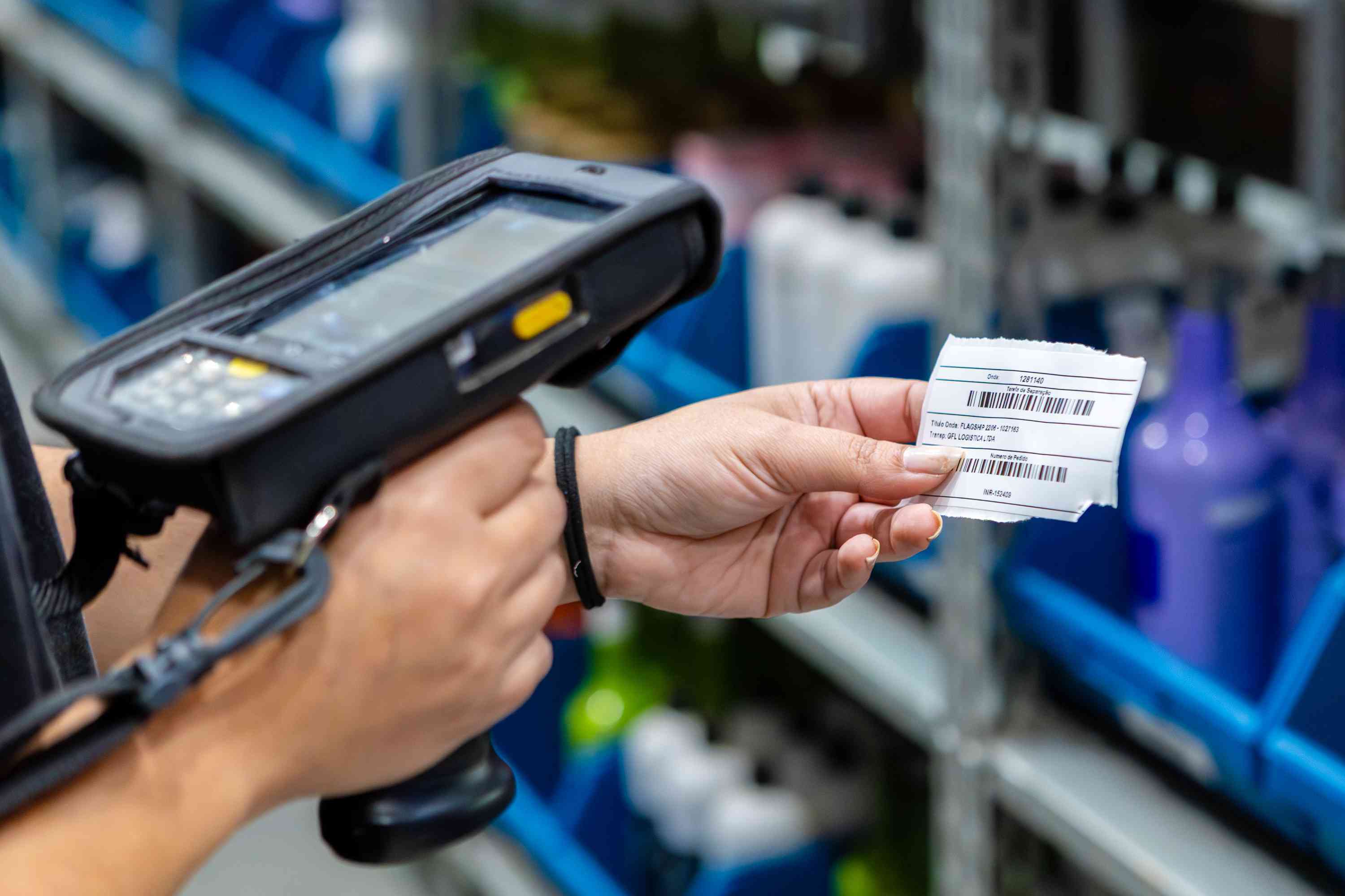 Tudo começa com o recebimento dos produtos nos nossos centros de distribuição (CDs). Nesse momento, a carga chega acompanhada da nota fiscal e, em seguida, passa pelo primeiro controle de entrada.